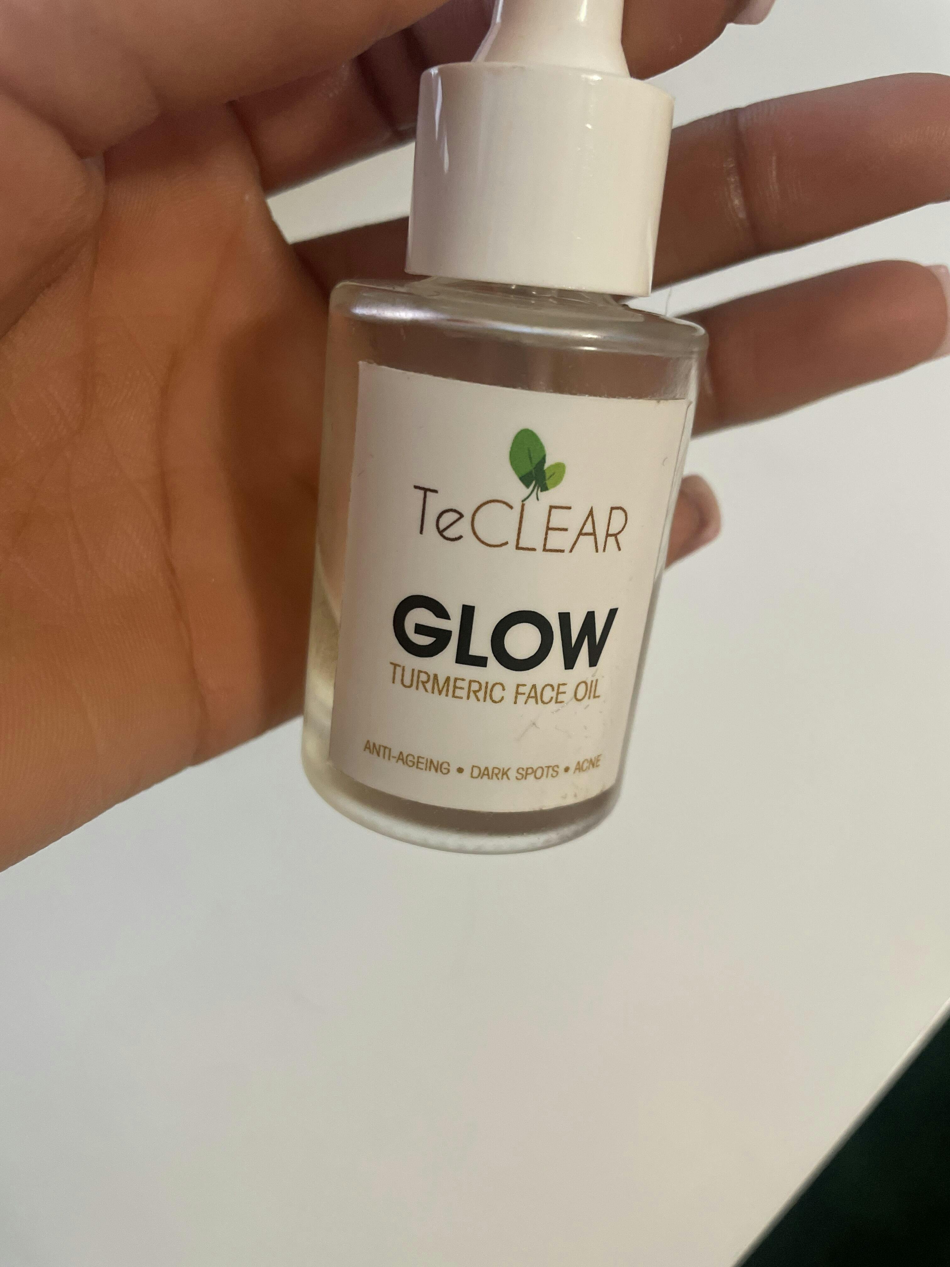 Our Teclear Glow, Turmeric face oil revives the skin by bringing out it natural glow and brightness. It helps to even out skin tone and reduce the appearance of acne scars, helps to clear hyper pigmentation, fine lines and wrinkles. Teclear Glow is very smooth and easy to absorb, not sticky, not greasy. Made with 100% pure plant extracts and natural ingredients. It can be use on all skin types.